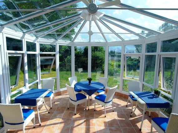 ご自宅を一部改装され、英国製コンサバトリーが“ワインカフェ”となっています。
