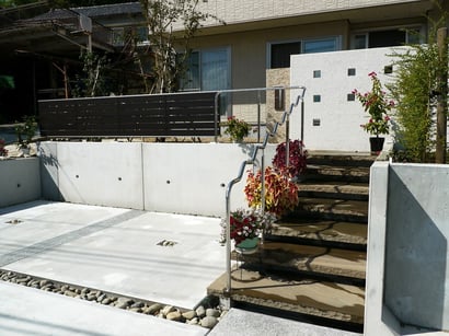 波型の手摺りは特注商品、施主様のご両親が京都のお寺で発見されたようです。